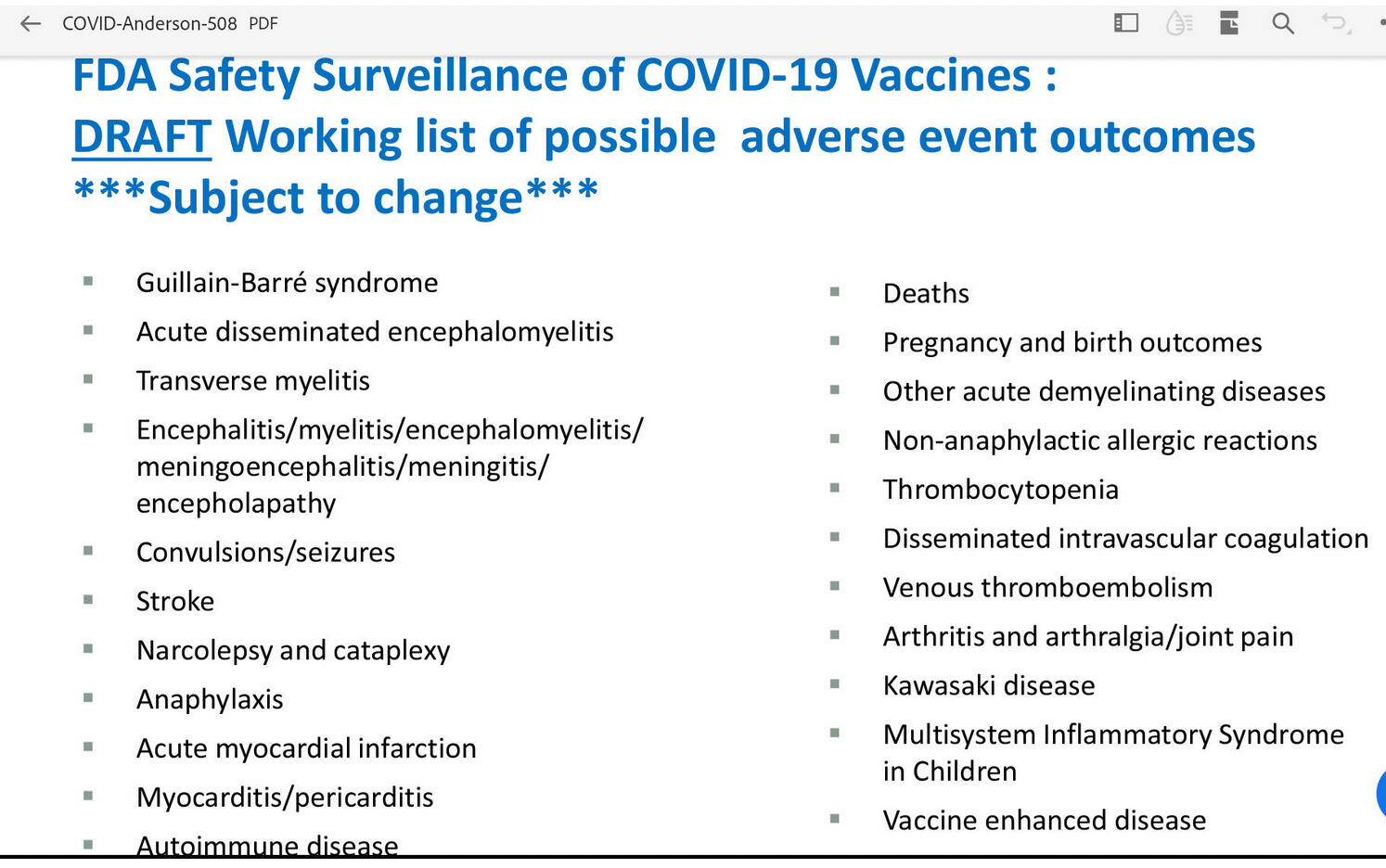 The CDC and the FDA listed all the potential adverse events in October 2020, but kept the information hidden. Download the document.